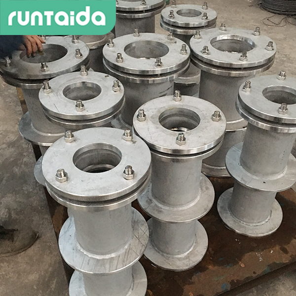我廠生產的防水套管是根據建筑科學研究院研制設計的S312、02S404標準圖集制造的。柔性防水套管一般適用于管道穿過墻壁之處受有振動或有嚴密防水要求的構筑物;穿墻處之墻壁,如遇非混凝土時應改用混凝土墻壁,而且必須將套管一次凝固于墻內;防水套管施用于建筑、化工、鋼鐵、自來水、污水處理等單位。說明: