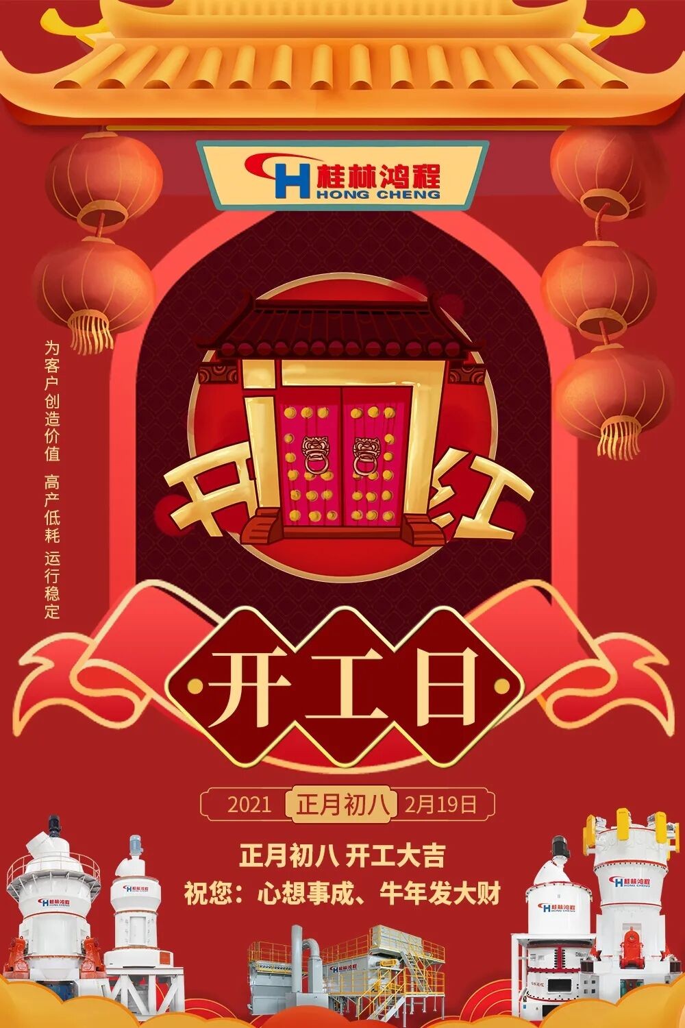 今天,桂林鴻程已全面開工,鴻程人將繼續(xù)以飽滿的精神面貌為您提供全方位服務(wù)。2021年,我們將繼續(xù)高歌猛進(jìn),齊創(chuàng)牛績(jī),共創(chuàng)輝煌。
